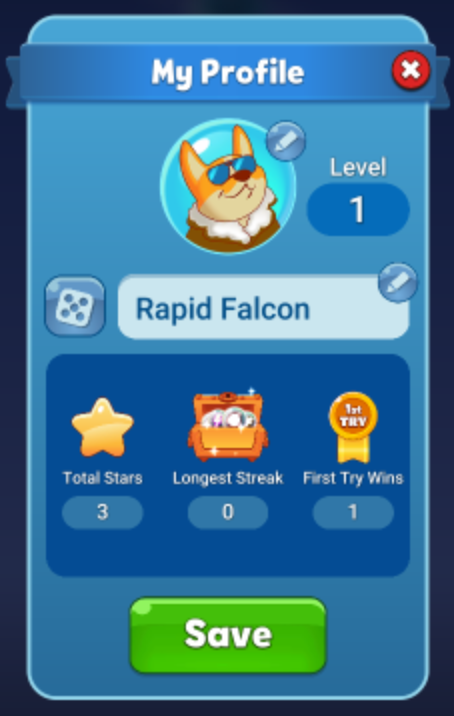 My profile allows you to select an avatar, name, and frame which is used to represent you in game.